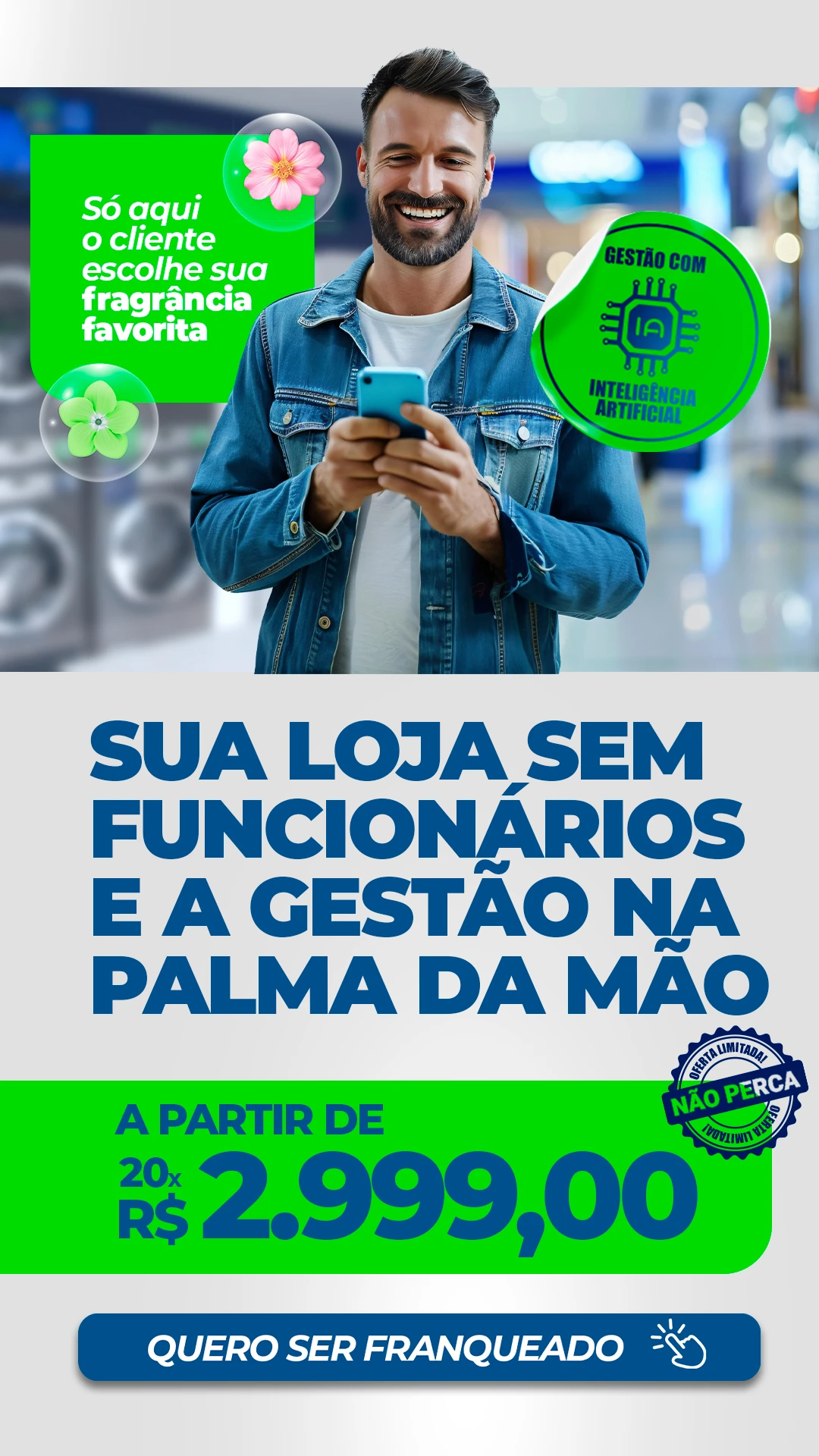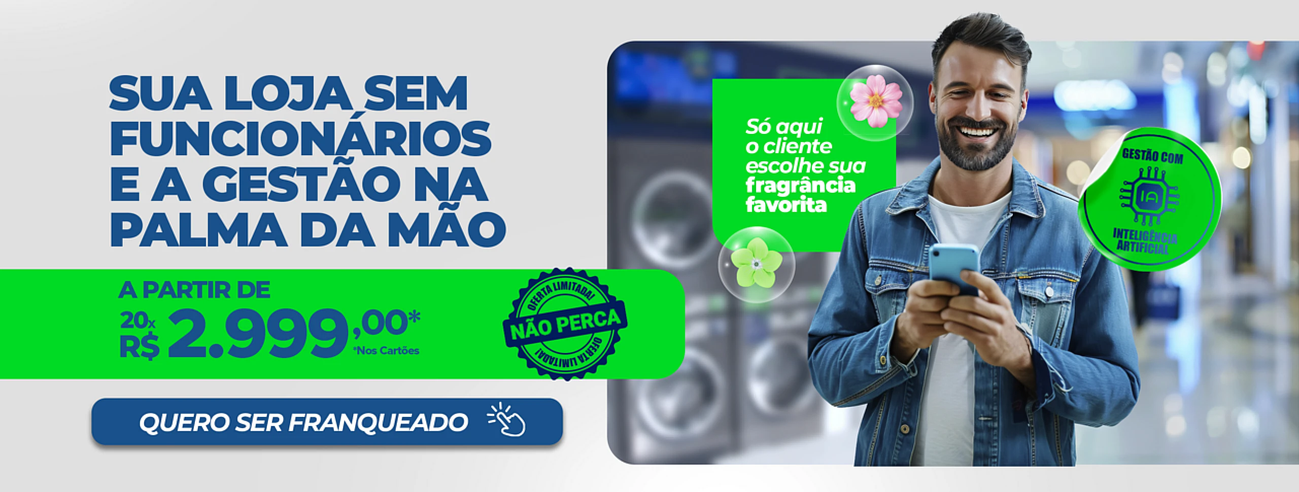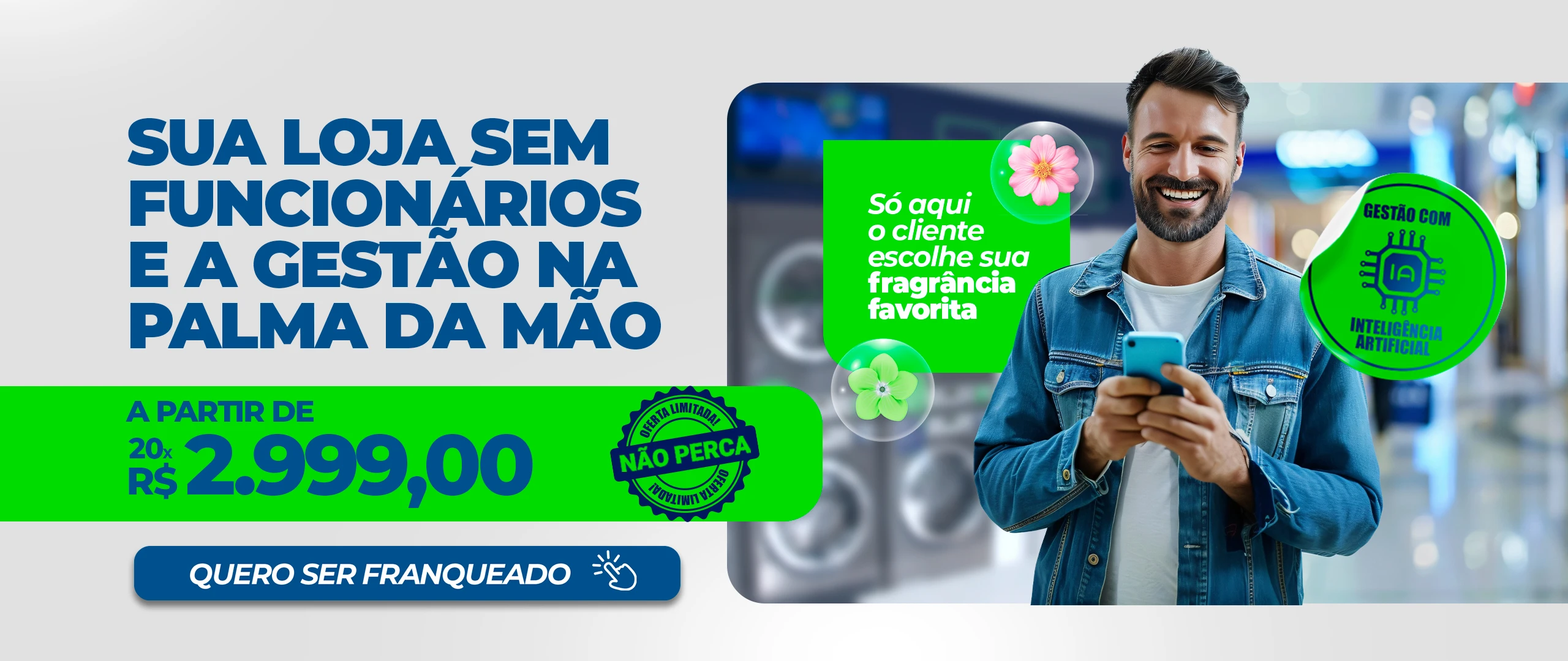 Única franquia onde o cliente escolhe a fragrância do amaciante!